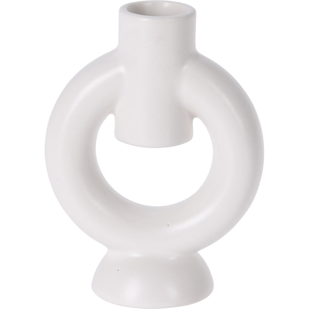 KERZENLEUCHTER KERAMIK ''RING'' 9X6X12CM MATT WEISS