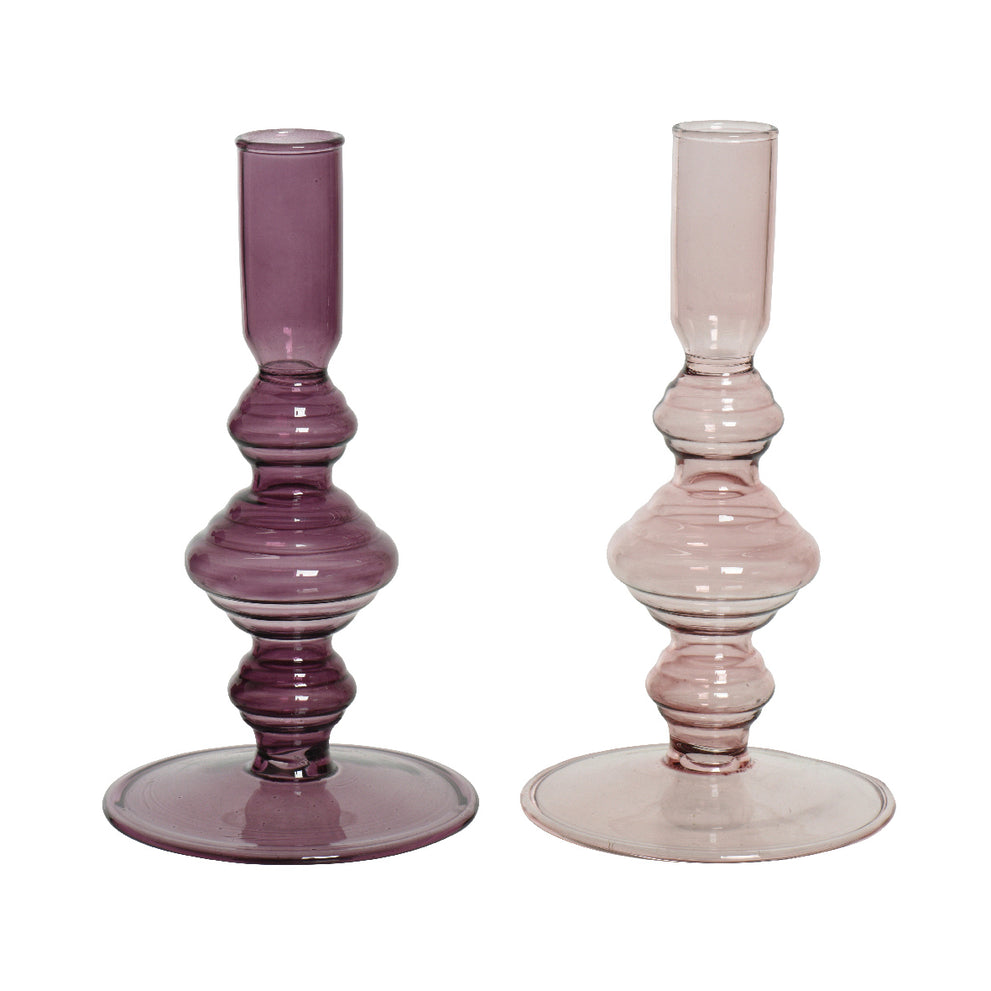 Kerzenleuchter Glas 2 Farben sortiert ''lila'' H16 T8,5cm