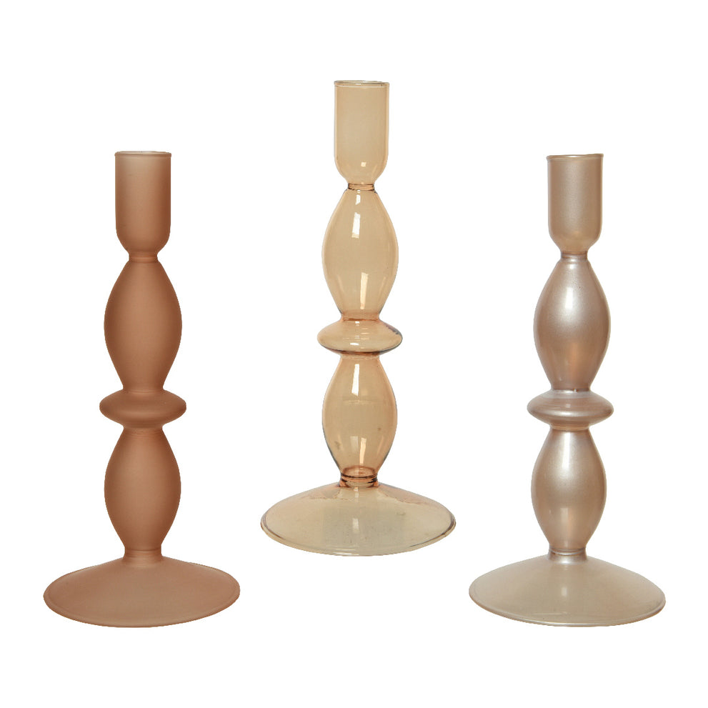Kerzenleuchter Glas glänzend w Spray Farbe 3kl.sortiert dia9-H20.5cm