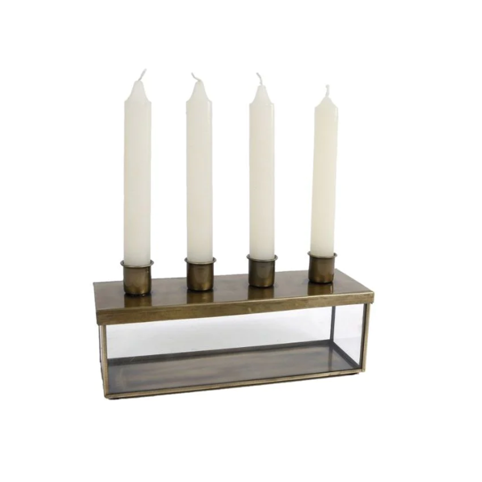 Kerzenständer Vitrine ''Iris'' Klarglas/Gold 22,5x7,5x7,5cm (ohne Kerzen)