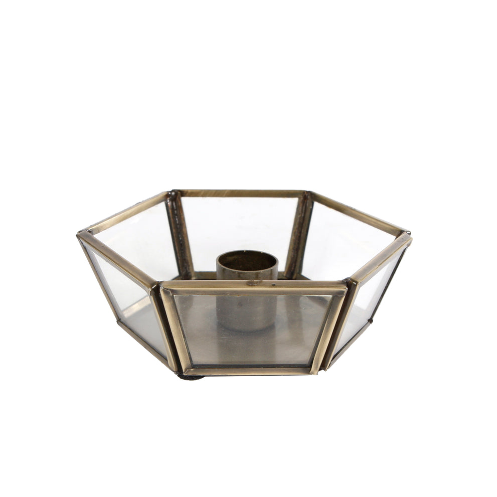 Kerzenleuchter "Stephanie" altgold Glas/Aluminium 11x12x4cm