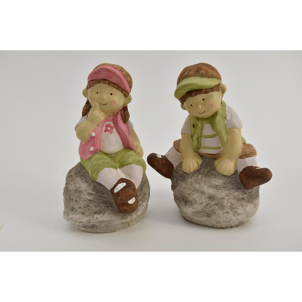 Kind sitzend auf Stein 2 sortiert 13x8.5x17cm aus Keramik Grün