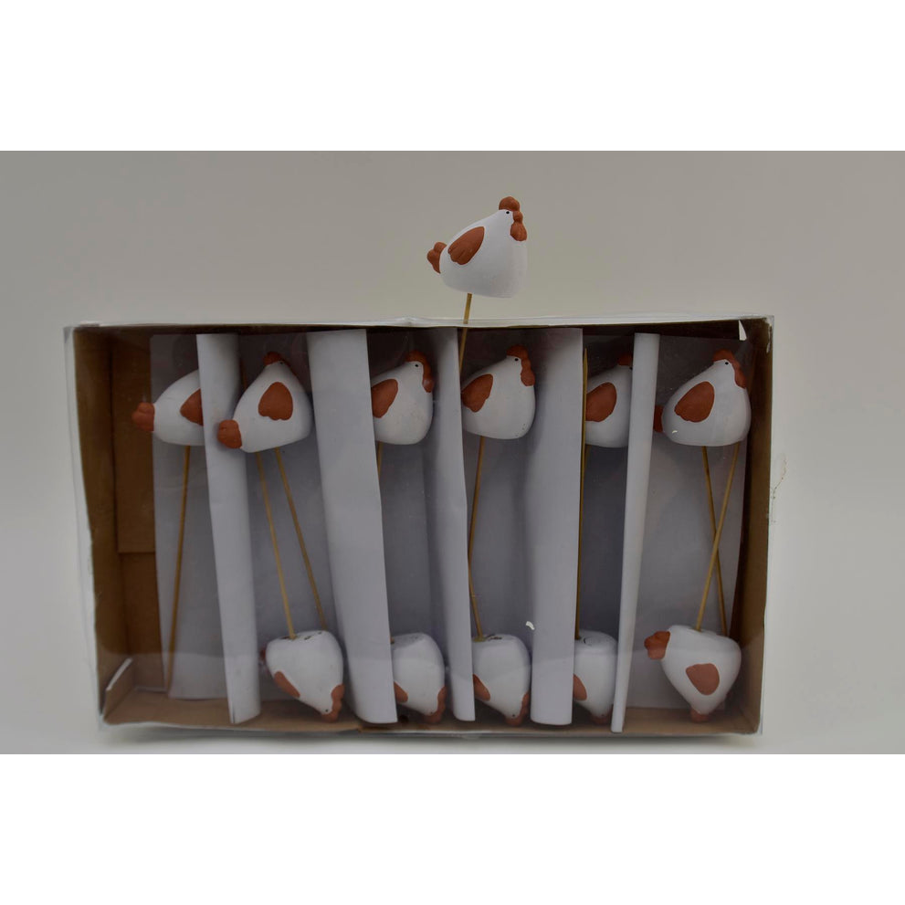Kip Op Stok 6 cm Wit - 12 Stuks