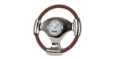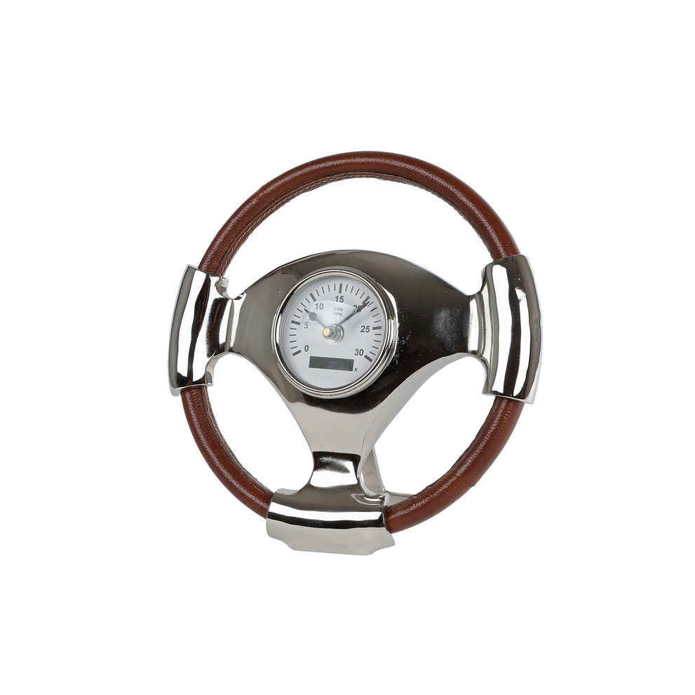 Klok "Racing Wheel" aluminium/leather-look 1xAAex 27x27x9cm