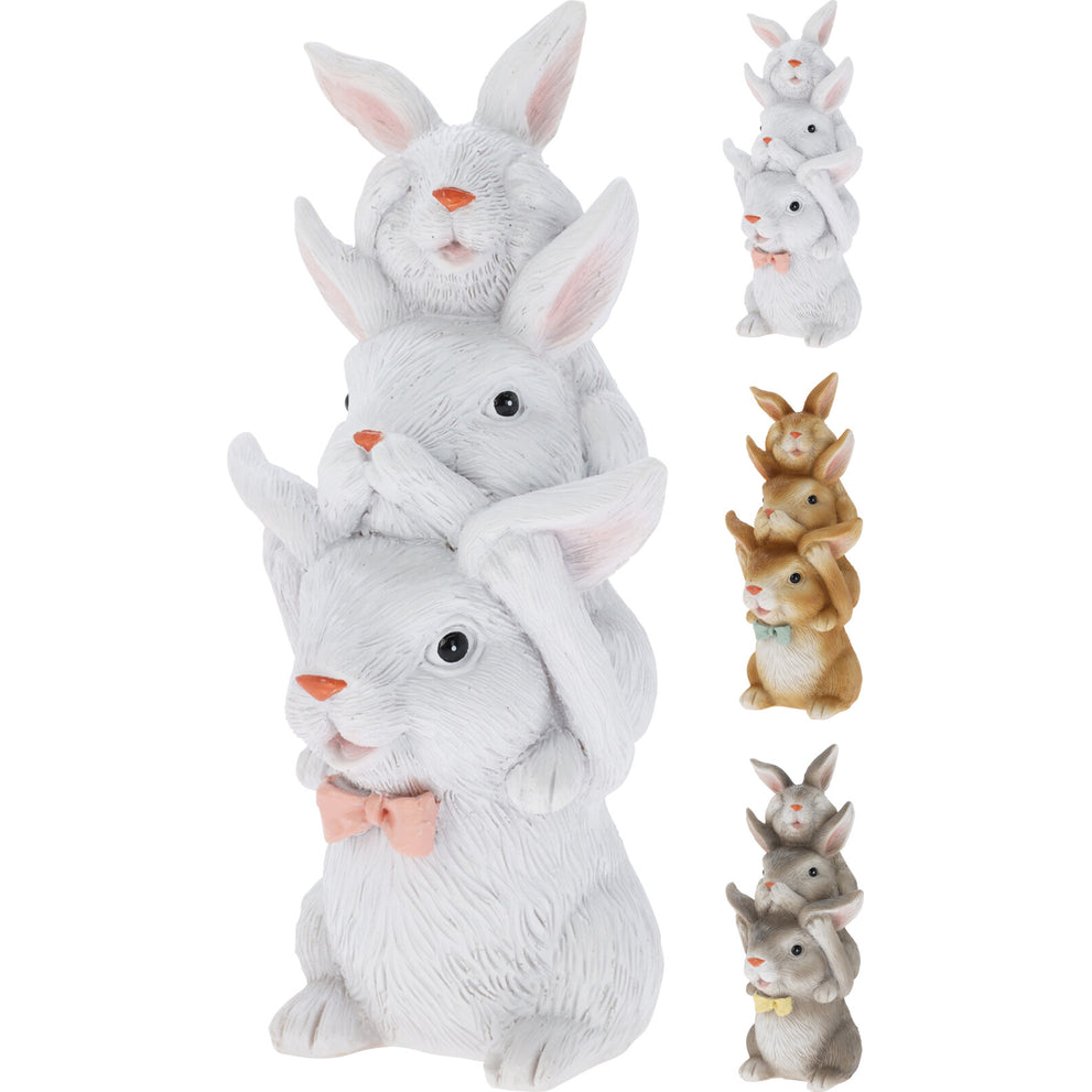 KANINCHEN 3 AUFEINANDER HÖREN SEHEN SCHWEIGEN D6 H13CM POLYESTER 3 SORTEN