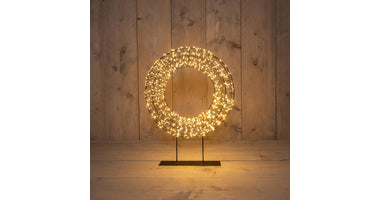 Metall-Kranz auf Fuß mit 1200 LEDs, Trafo, Timer und Dimmer, 36 x 8 cm