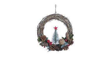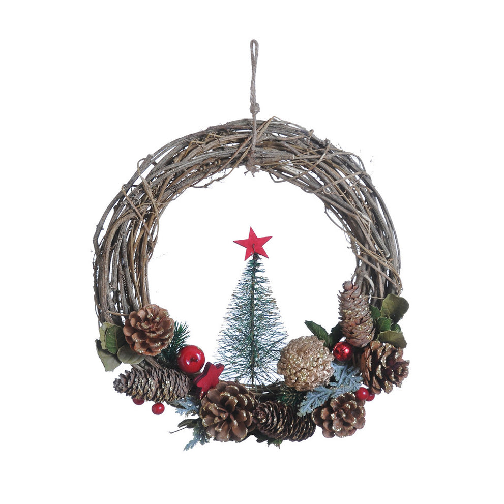 Kranz Tannenzapfen Rot Stern Rattan Ø30 H8cm Natur/Rot