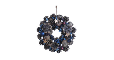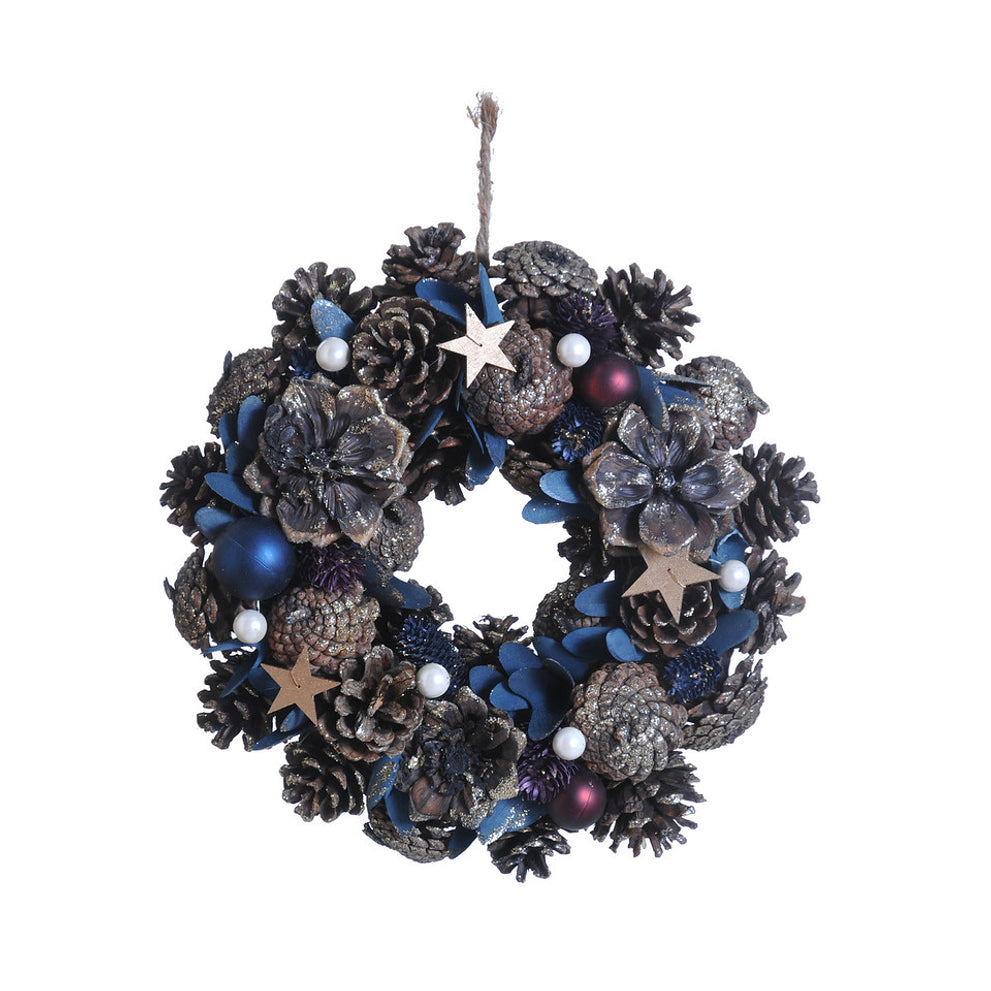 Kranz Tannenzapfen Weiß Beere Ø30 H8cm Blau/Gold