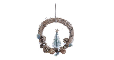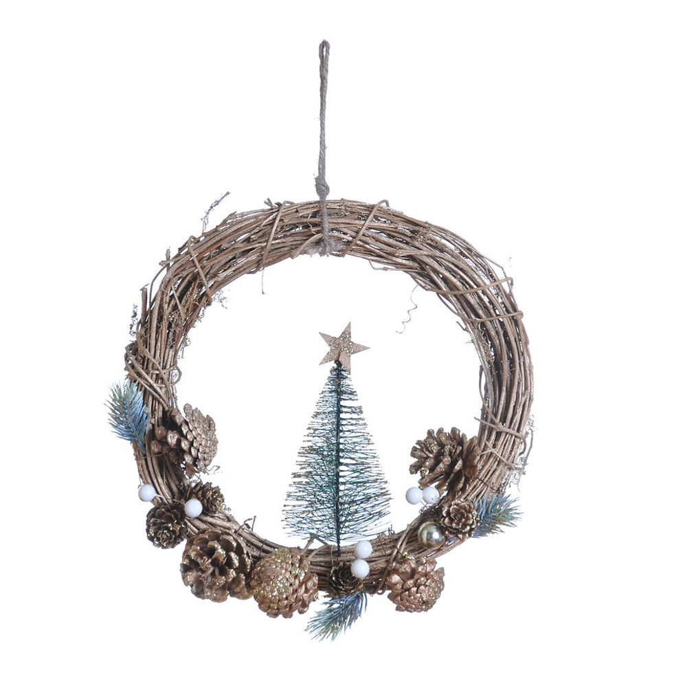 Kranz Tannenzapfen Weiß Beere Rattan Ø30 H8cm Weiß/Gold