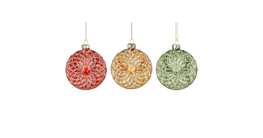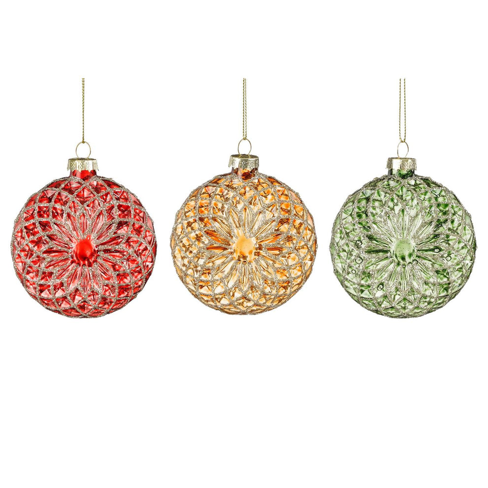 Kugel Glas Blume rot grün gold 3 sortiert Display - h3xd8cm