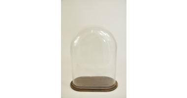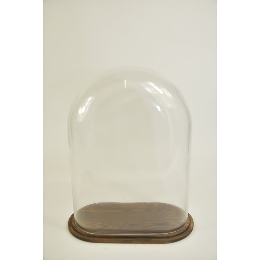 Pokal oval XL Klarglas 30x16x40cm braunes Holztablett