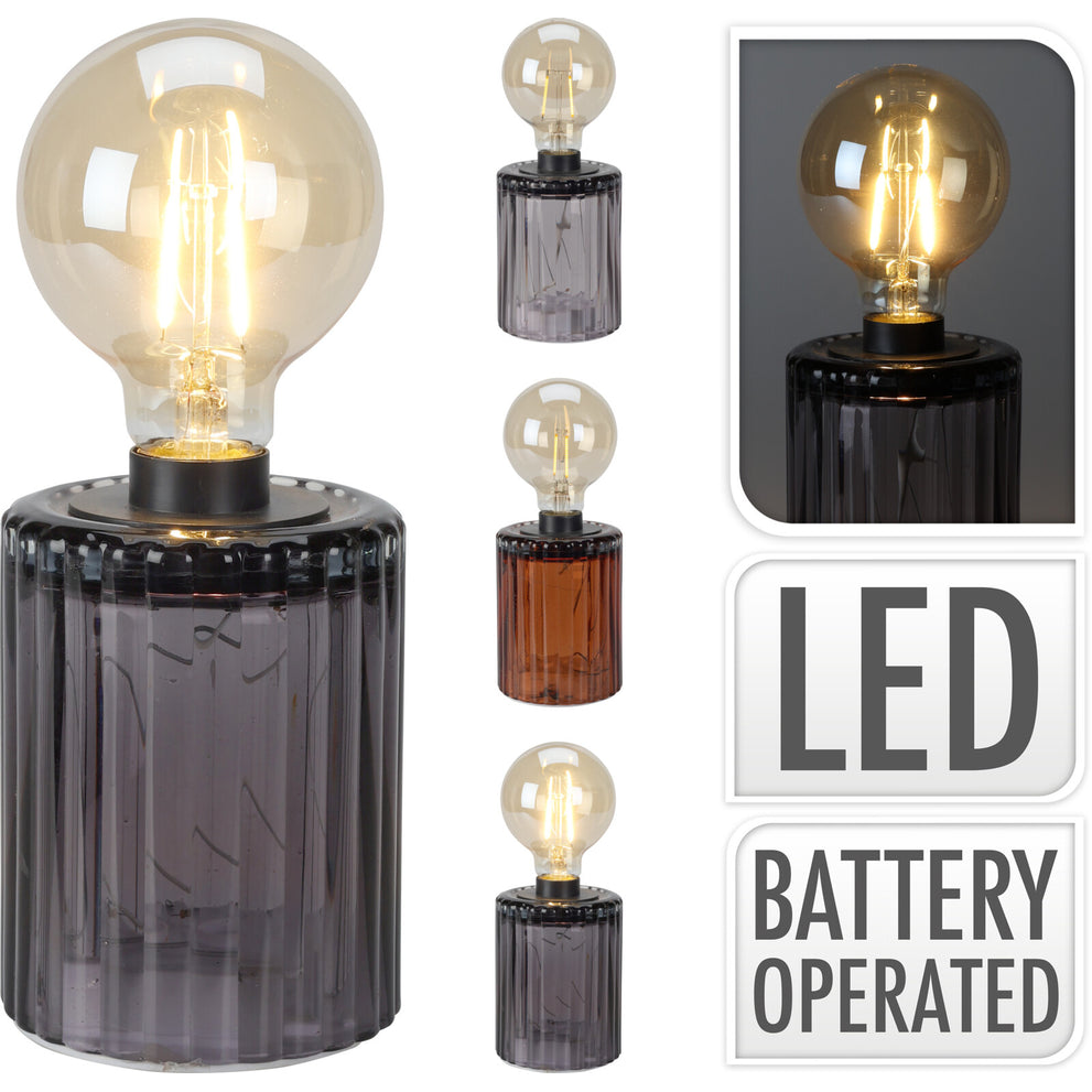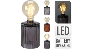 LAMPE AUF GLASBASIS D9 H24CM 3 FARBIG SORTIERT OHNE 3XAA BATTERIEN