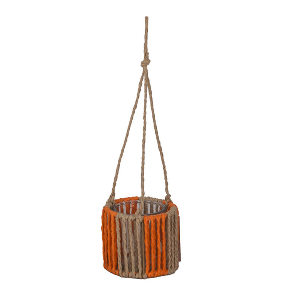 Lantaarn hangend Nicole papiertouw met glas D10 H9/37cm Orange
