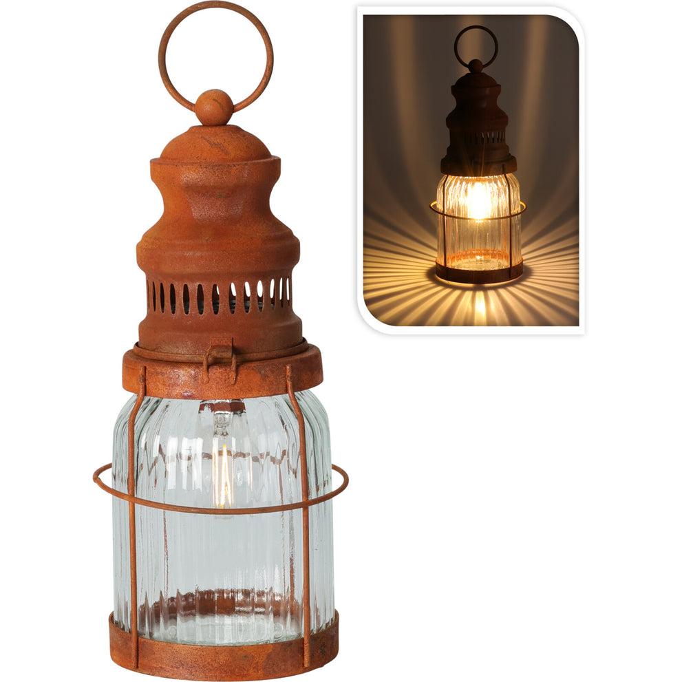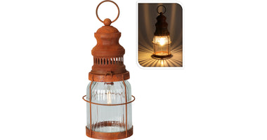 LANTAARN MIT GRIFF D 11.5 H29CM rostig (exkl. 2xAAA-Batterie)