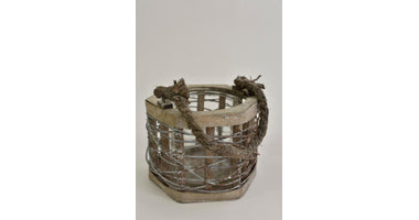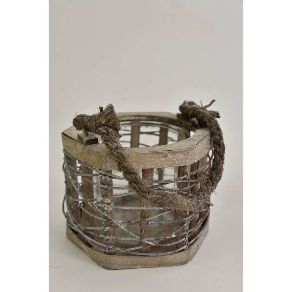 Laterne Six aus Metallgeflecht, grau gewaschen, mit Henkel, 15x14x11cm