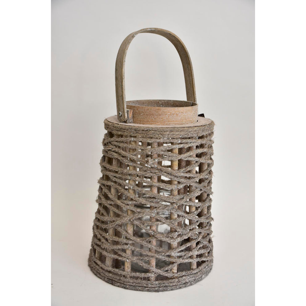 Lantaarn rond L met jute grey-wash met hengsel D23 H41cm