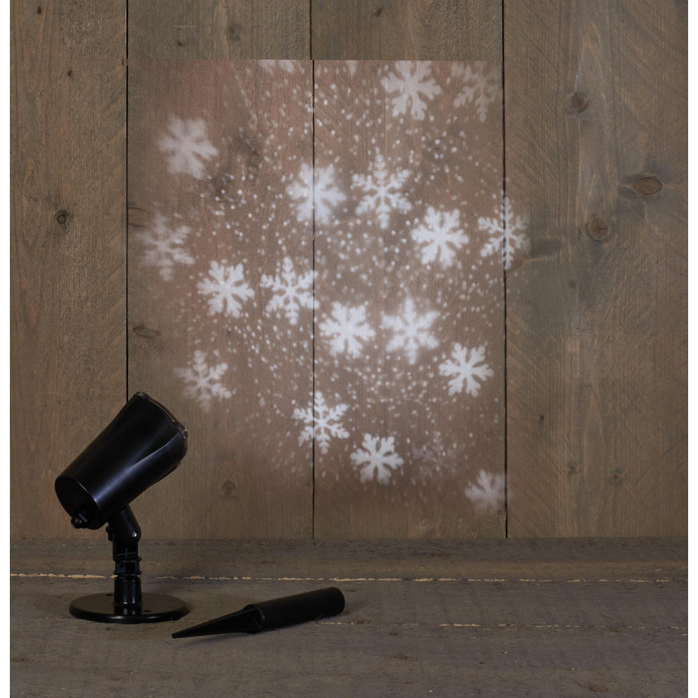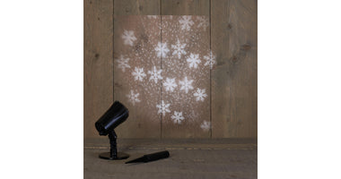 LED AUSSENPROJEKTOR SCHNEEFLOCKE LED WEISS MIT BASIS UND STECKER / 8/16H TIMER IP44 / 5M NETZKABEL
