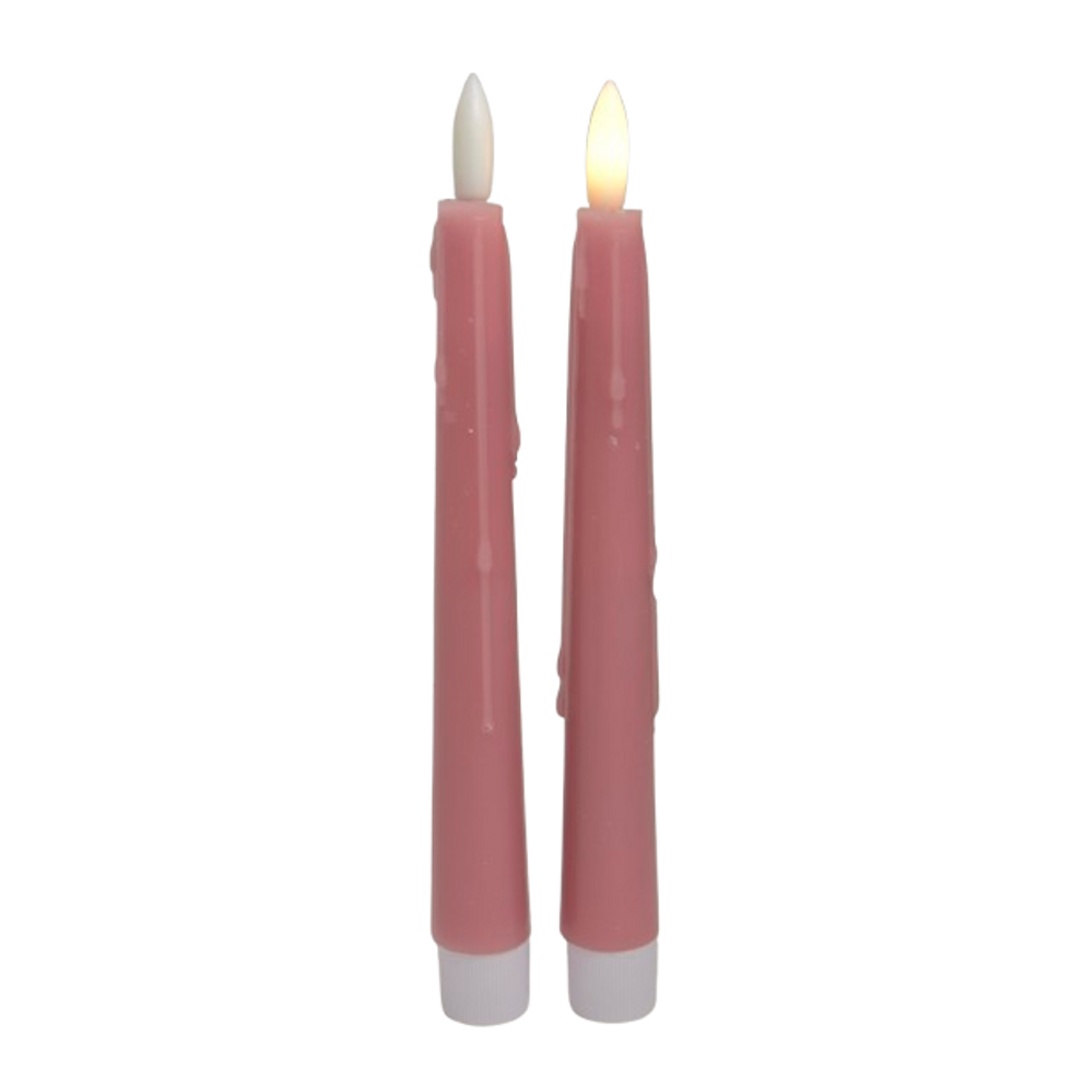 LED-Tischkerze, tropfend, 20 cm, hellrosa, 2er-Set (exkl. 1xAAA)