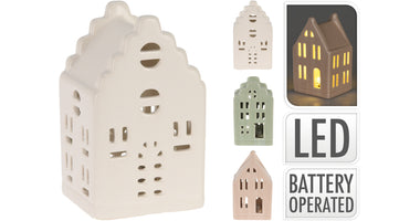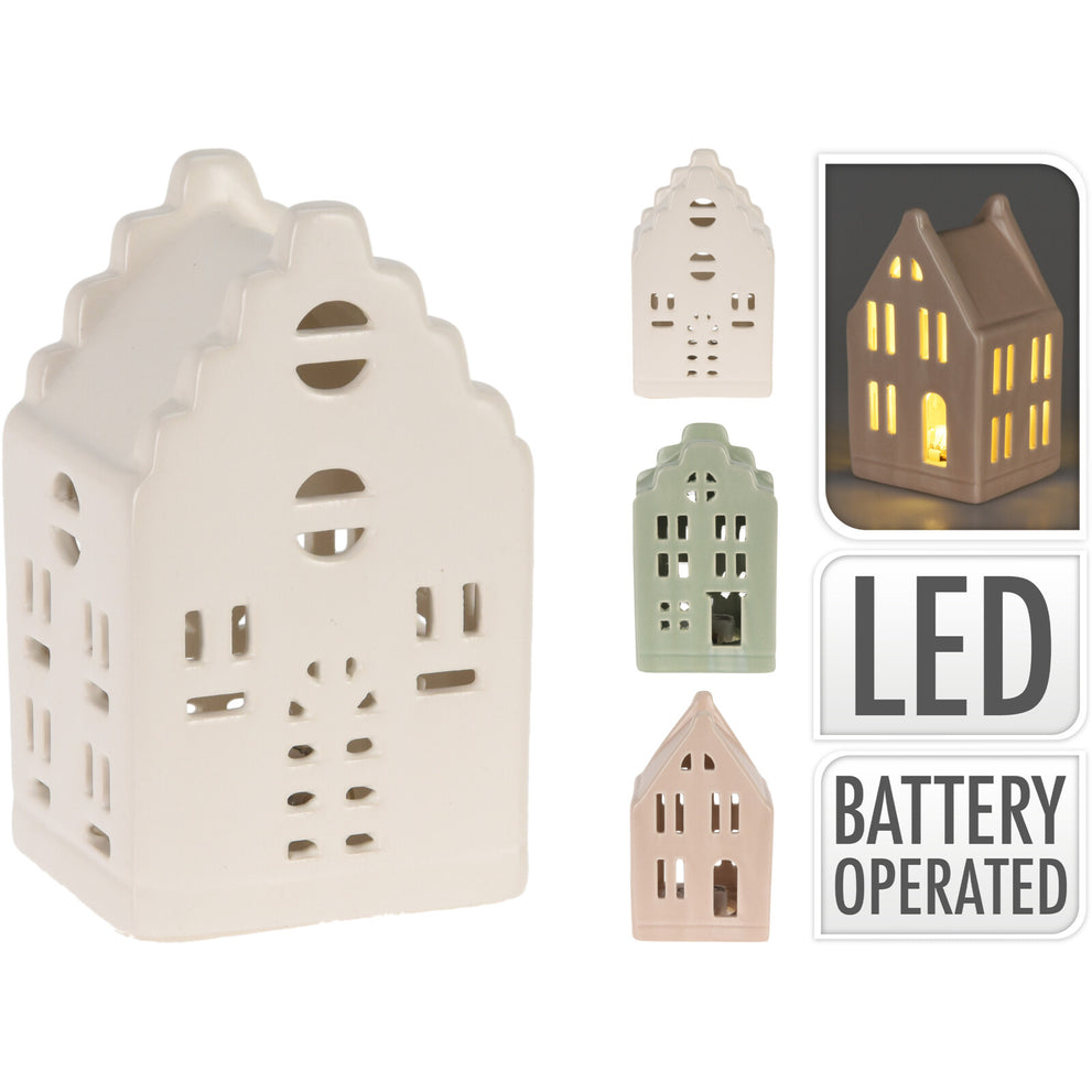 LED-Häuschen-Set, 3-teilig, Porzellan, 6 x 5,5 x 10 cm, inkl. Batterien