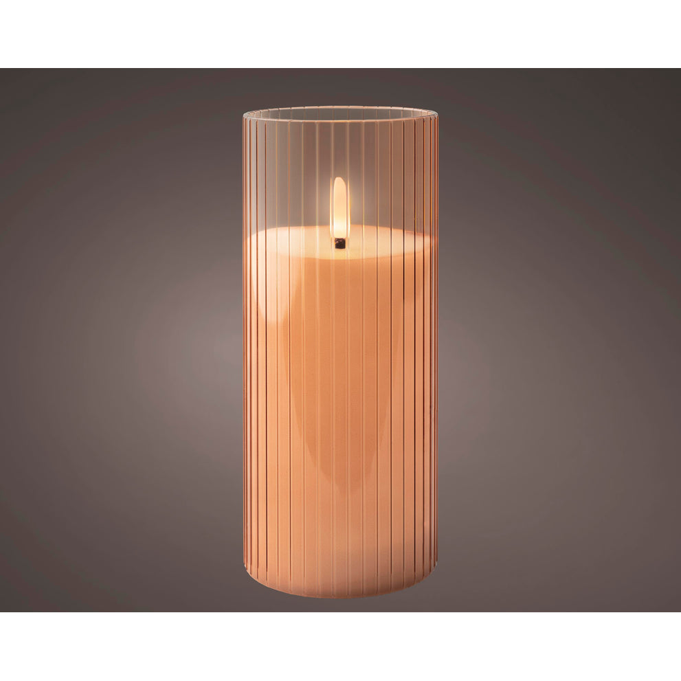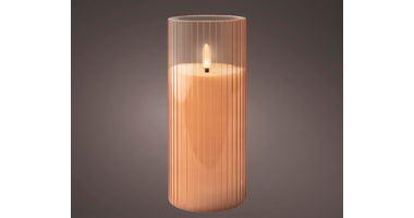 LED Kerze Glas BO innen rosa/warmweiß H17.5 D7.5cm