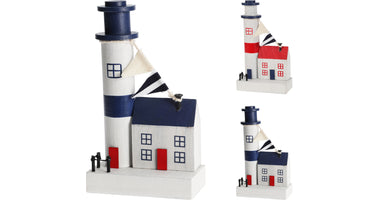LEUCHTTURM MIT HAUS HOLZ 10X17CM 2 SORTIERT
