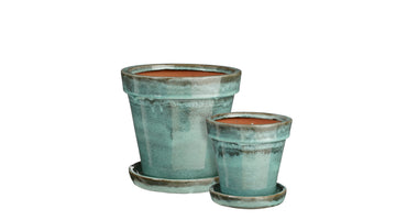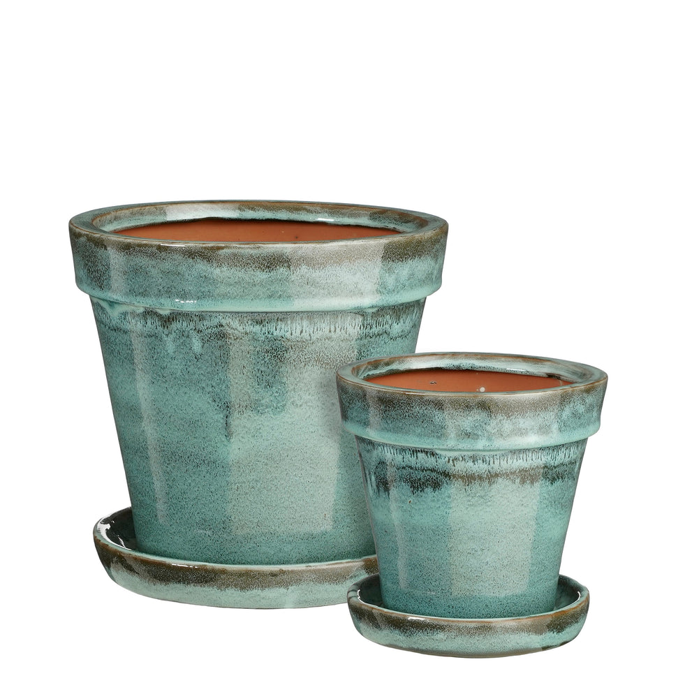 Lotus-Topf mit Untersetzer, grün, 2er-Set - H23 x D25 cm