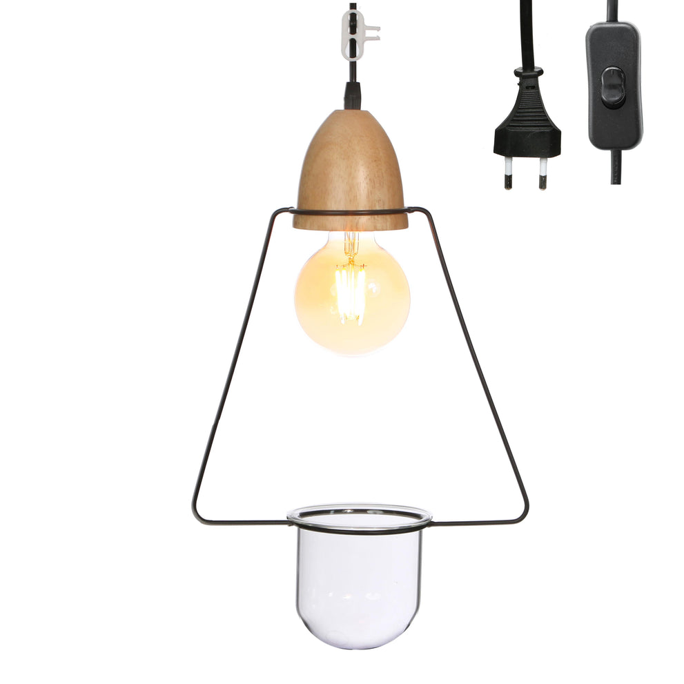 Metall Dreieck mit Holz Lampe 220V l.28 b.11.5 h.45 cm