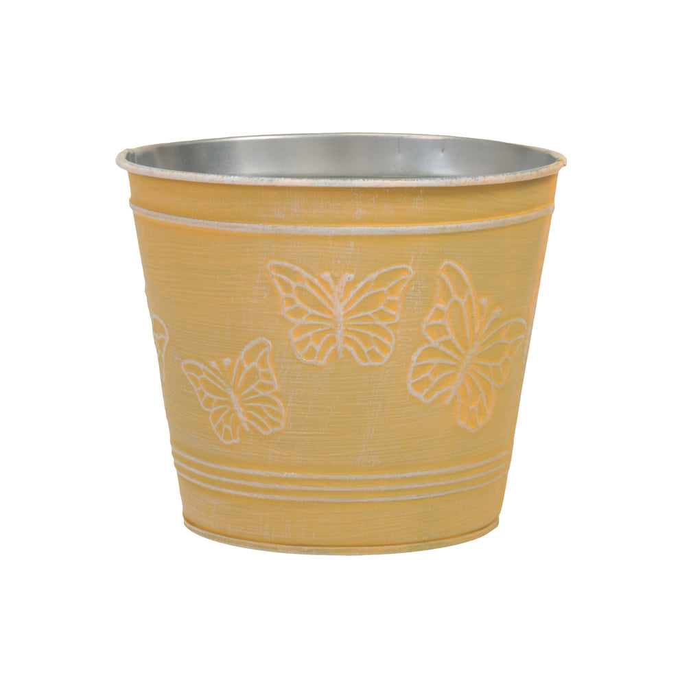 Metallkorb mit Schmetterlingen gelb Ø 14x12 cm