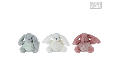Mini Club rammelaar konijn structuur pluche 3 assortie 16cm