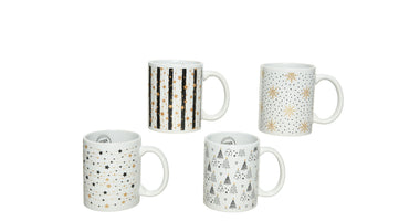Mok keramiek ''sterren'' 4 assortie wit/goud 12x8x10cm