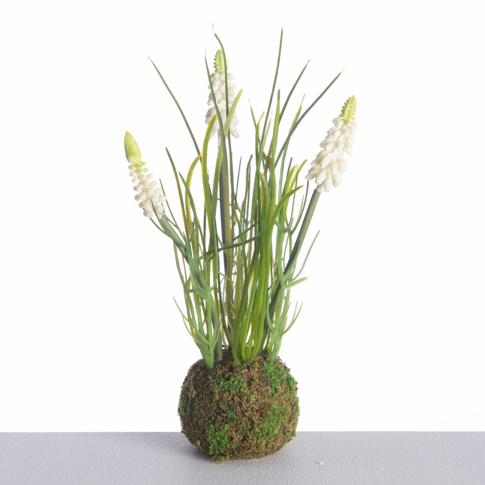 Muscari x3 on mossball L24cm white