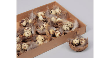 Nest mit Wachtel Eiern 7 cm - 12 Stück