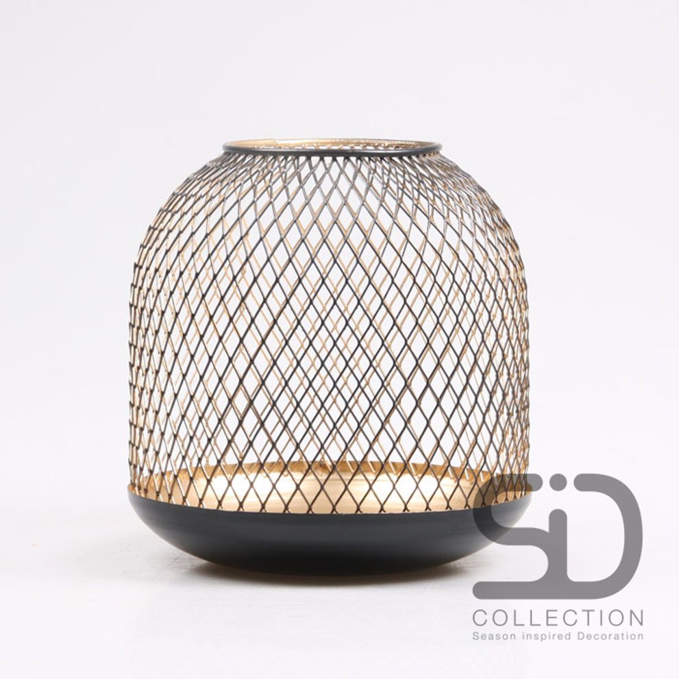 NETZ-TISCHLATERNE ELVISSA L SCHWARZ/GOLD 20X20X20 CM