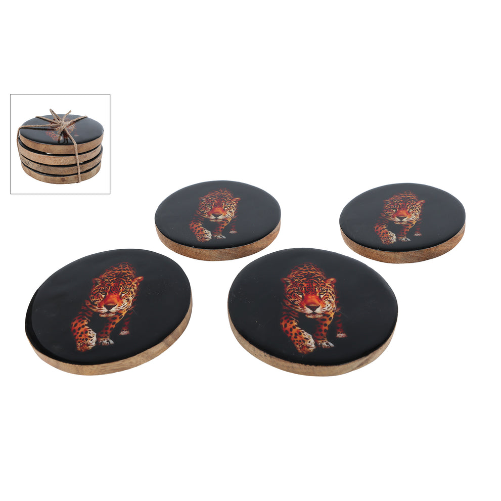 Onderzetter "Leopard" s4 zwart hout/emaille 10x10x3,5cm