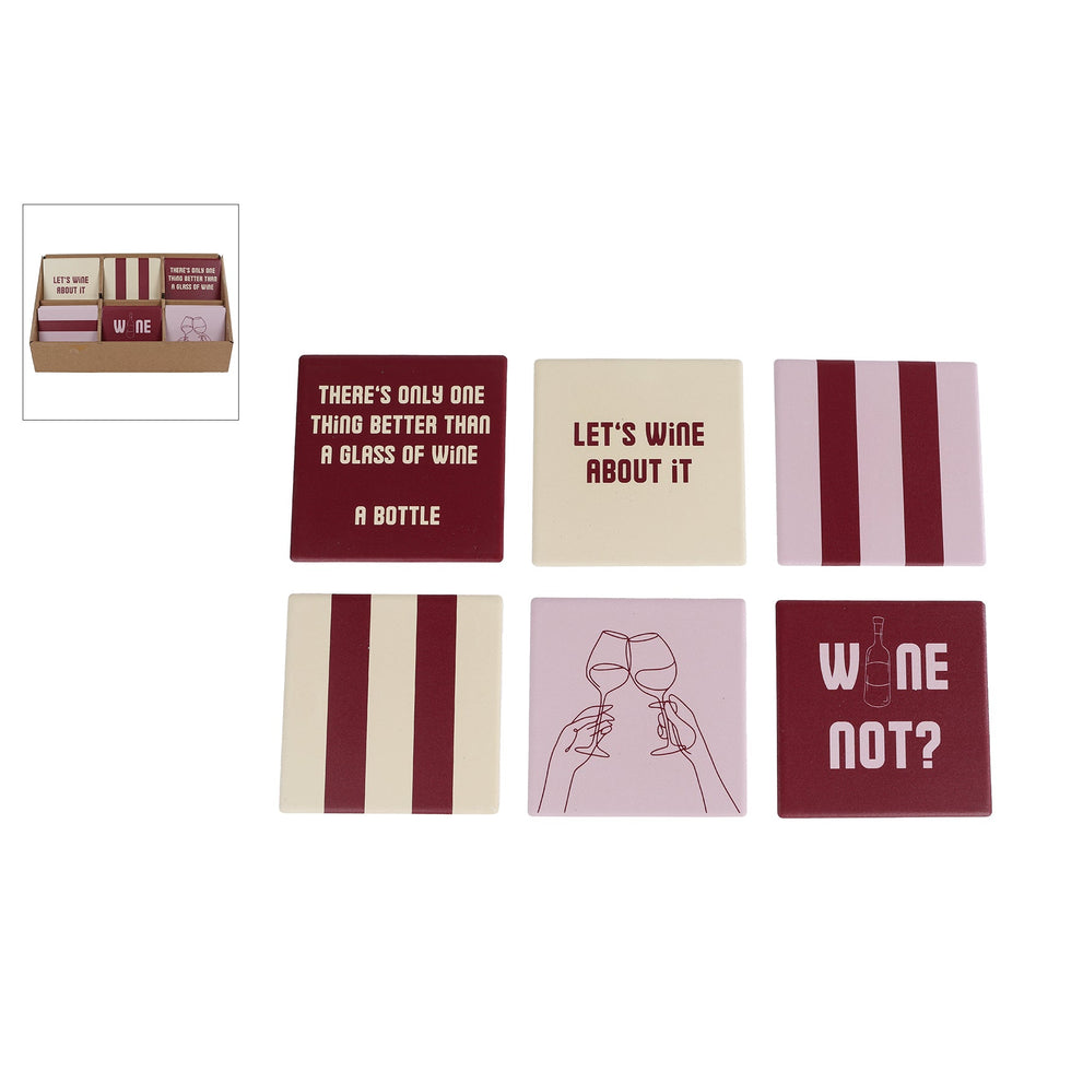 Onderzetter "Wine" met tekst a6 aardew 10x10x0,7cm