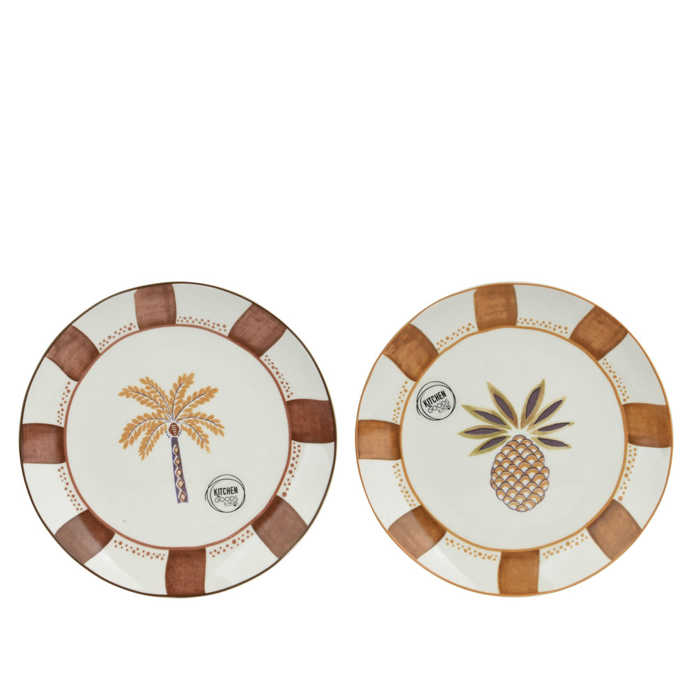 Ontbijtbord porselein 2 assortie bruin/kleur(en) 18.2cm x 2cm