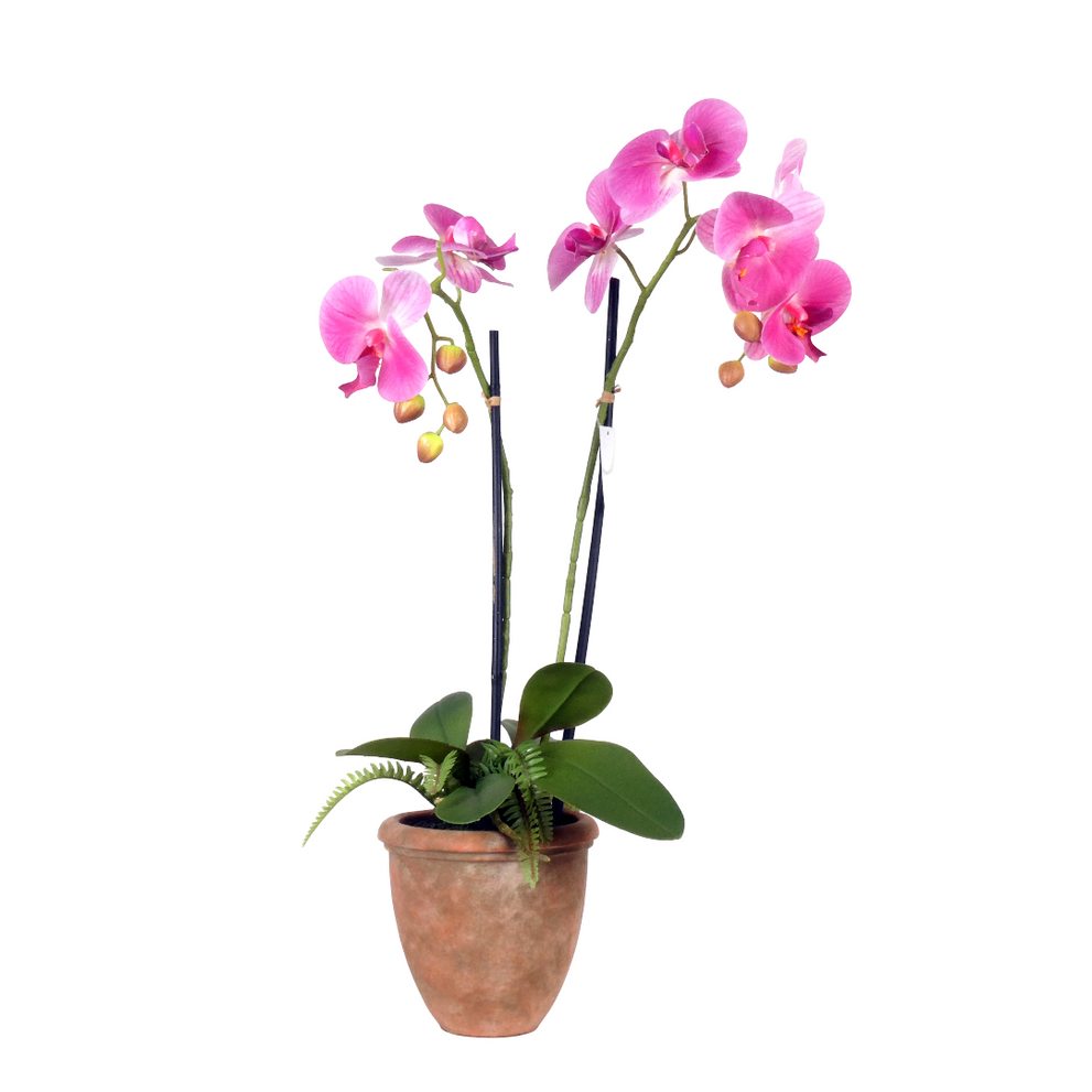 Orchid 2 branches + Fern in ceramic pot H61cm pink
