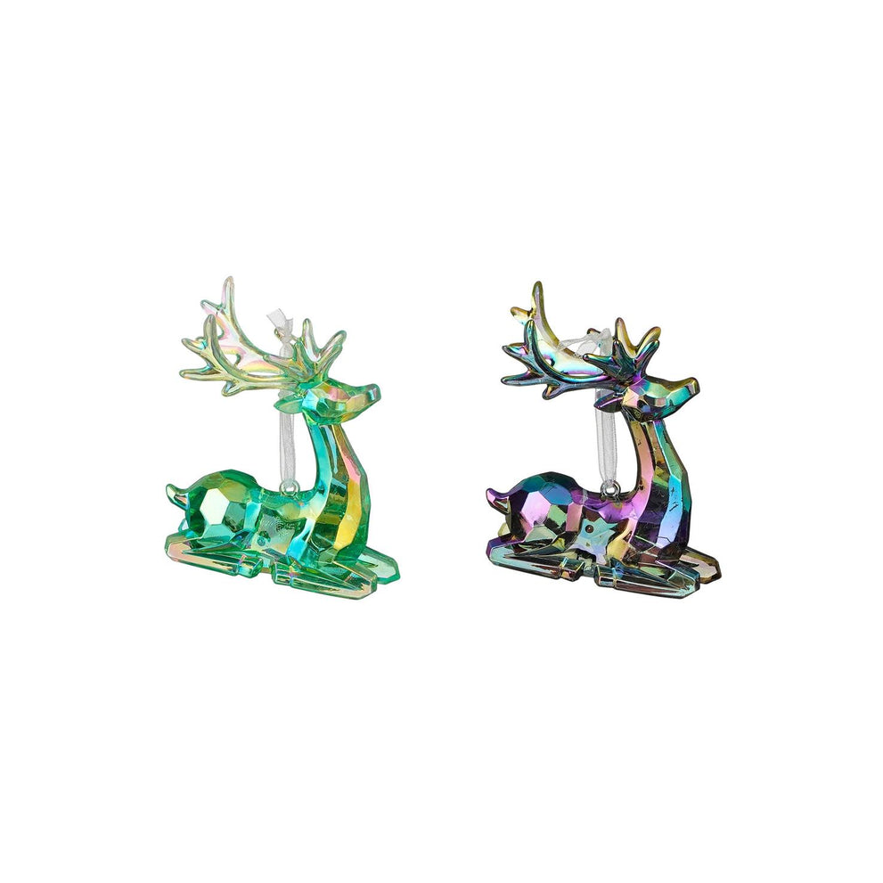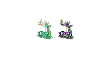 Hirschornament grün-blau, 2er-Set - L7,5 x B2,5 x H9 cm