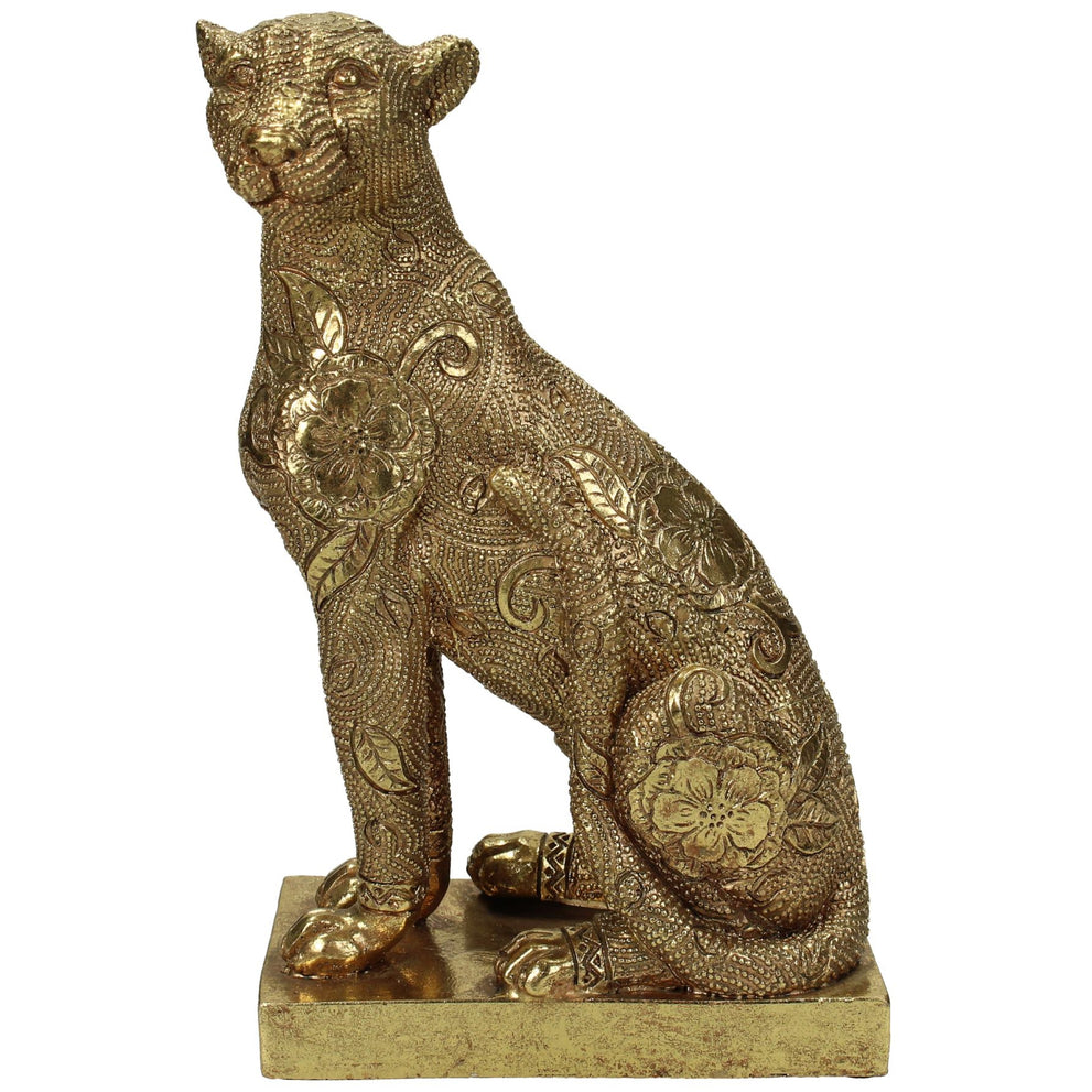 Ornament Leopard Polyresin Gold 13x8.5x20.5cm