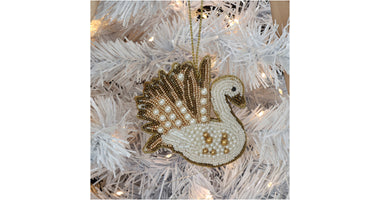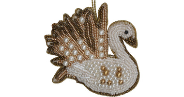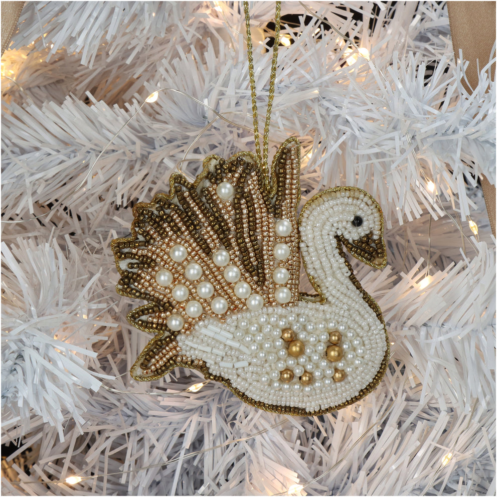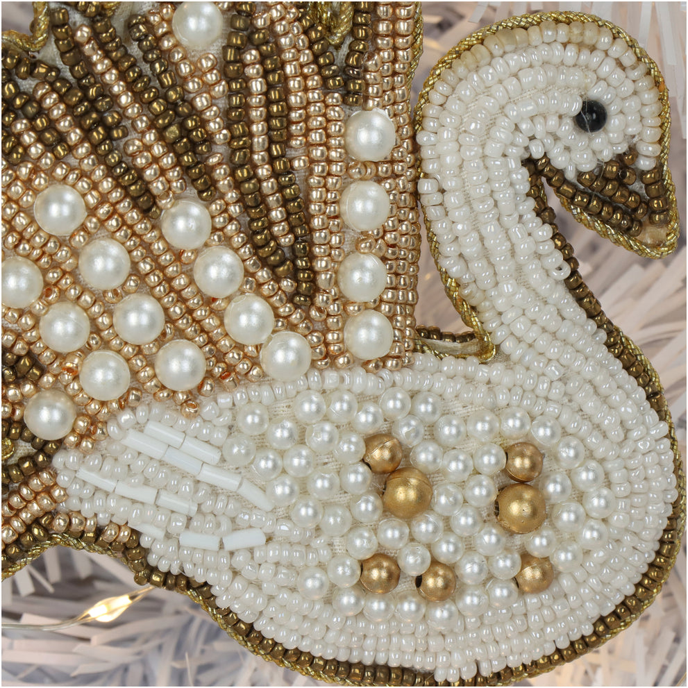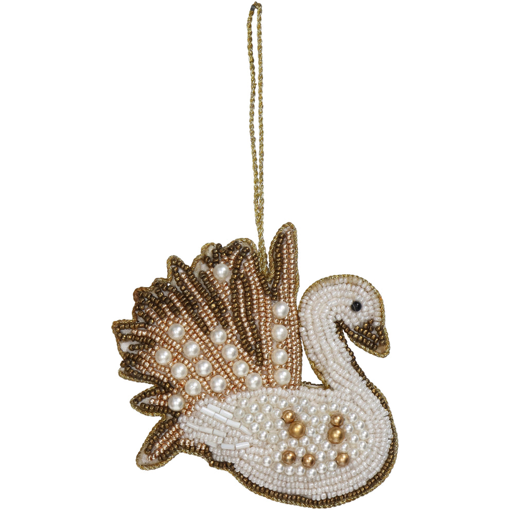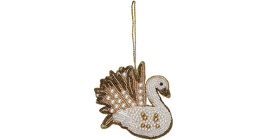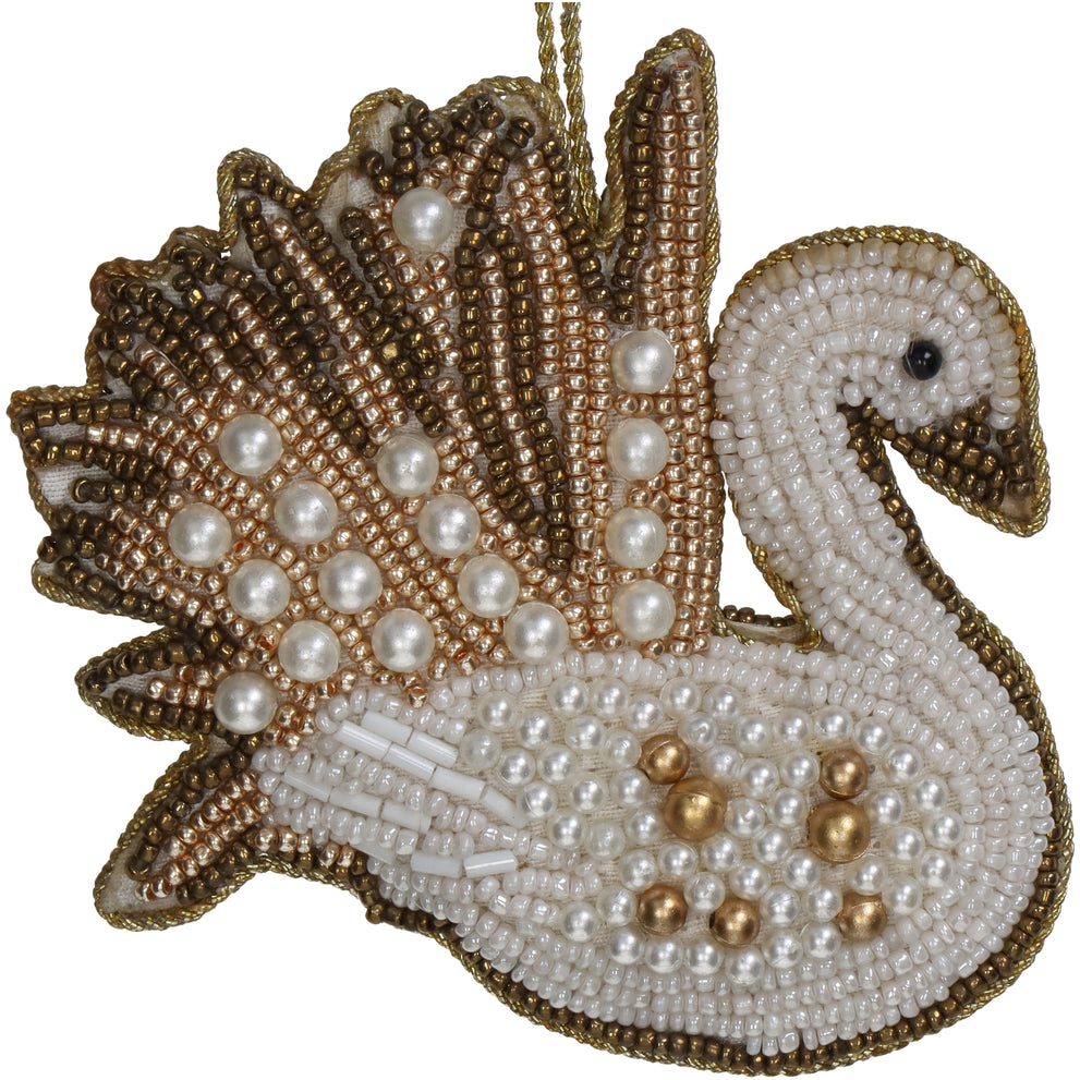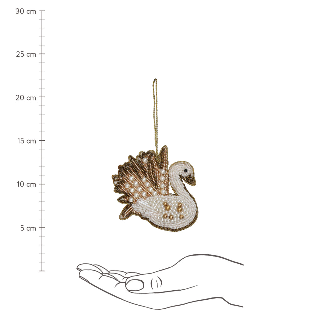 Ornament Schwan Perlen Weiß 10cm