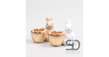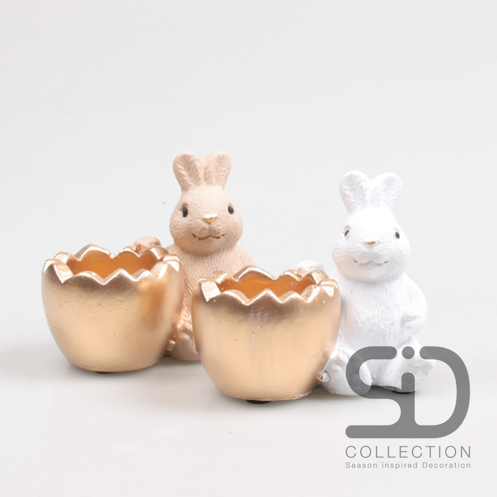 Osterhase mit Eierschale aus Zement, 2-teilig, 10 x 6 x 9 cm, camel, weiß