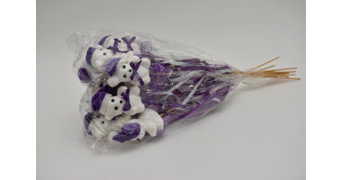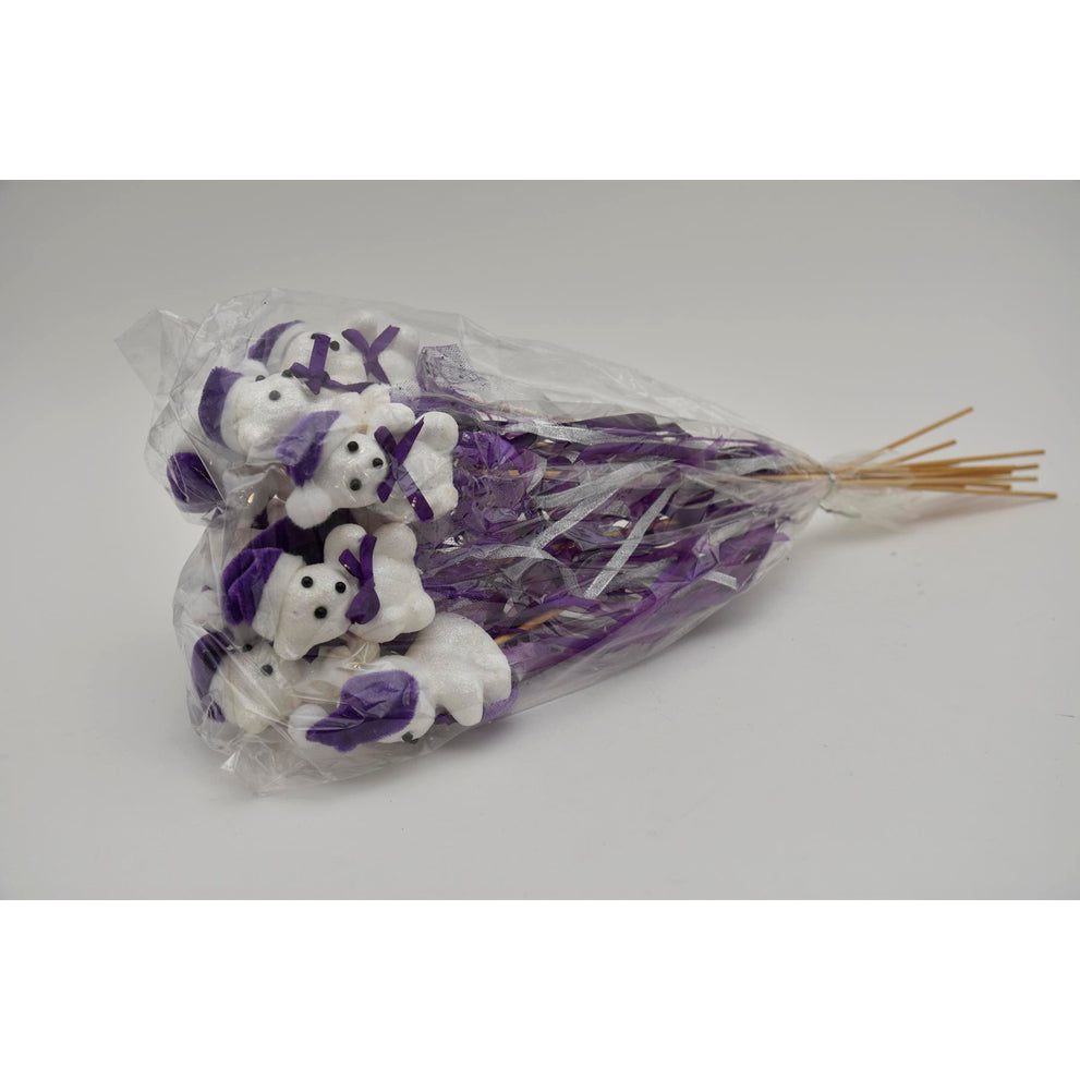 12 Bier lila/weiß Glitzer auf 50 cm Stock mit Band.