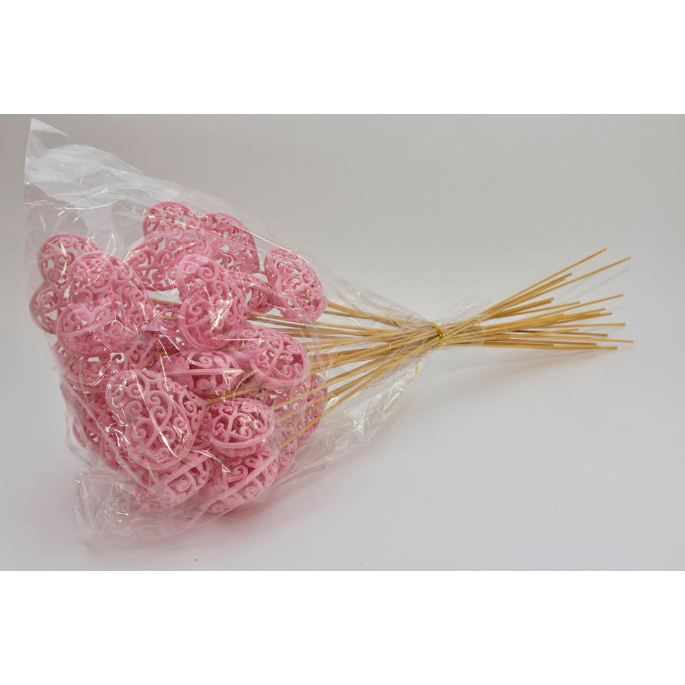 Packung mit 25 Herzen barock rosa Flock 7x7cm auf 50cm Stick