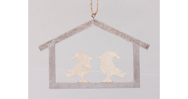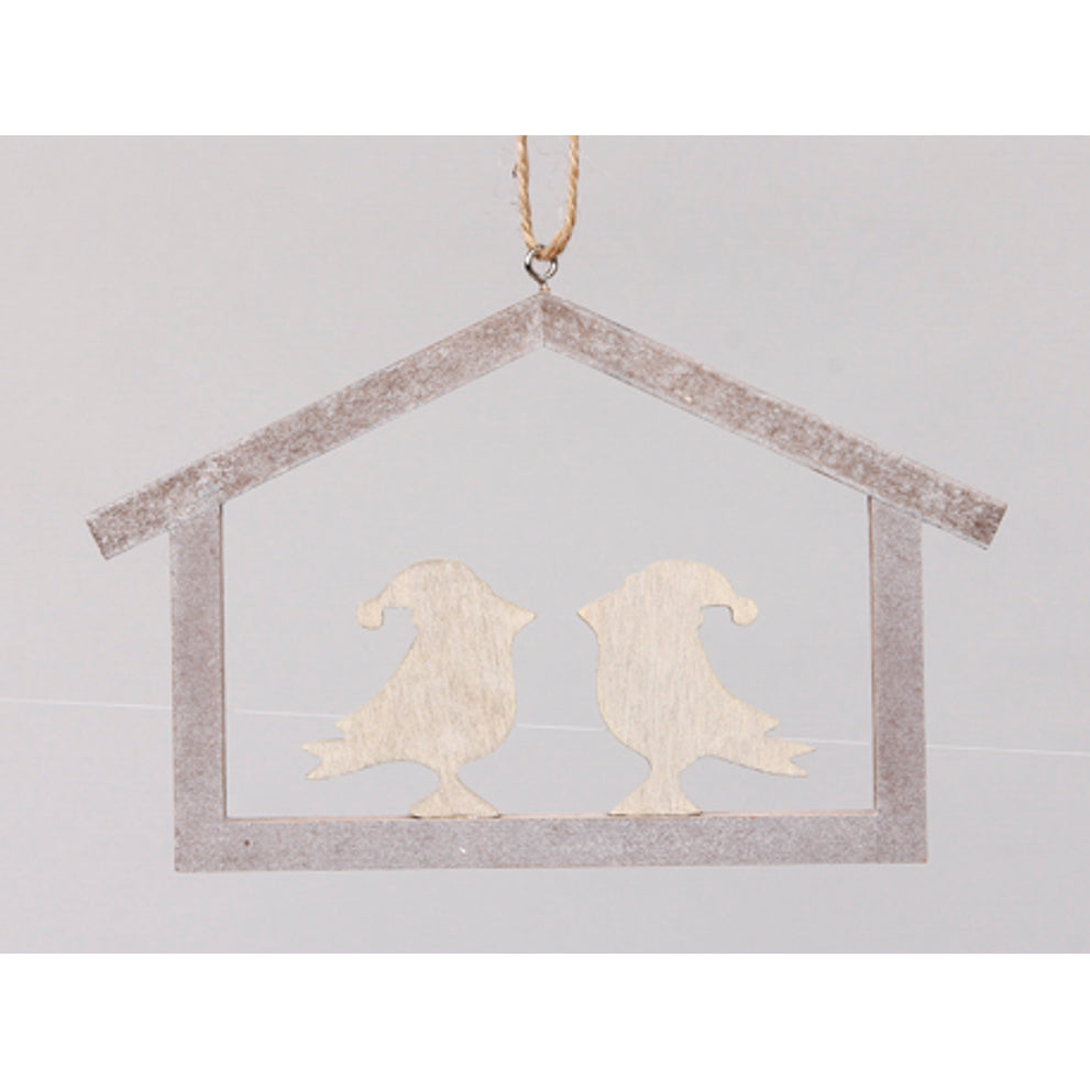 pb. 1 Holzhaus 2 Vögel Pflaume 16,5x11 cm