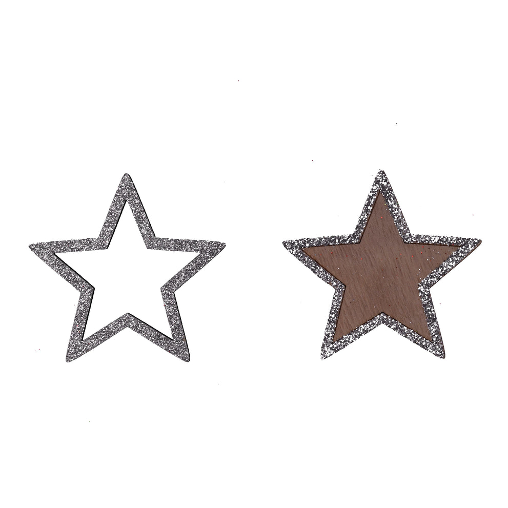 pb. 12 Holzsterne mit Glitzersilber 6 cm
