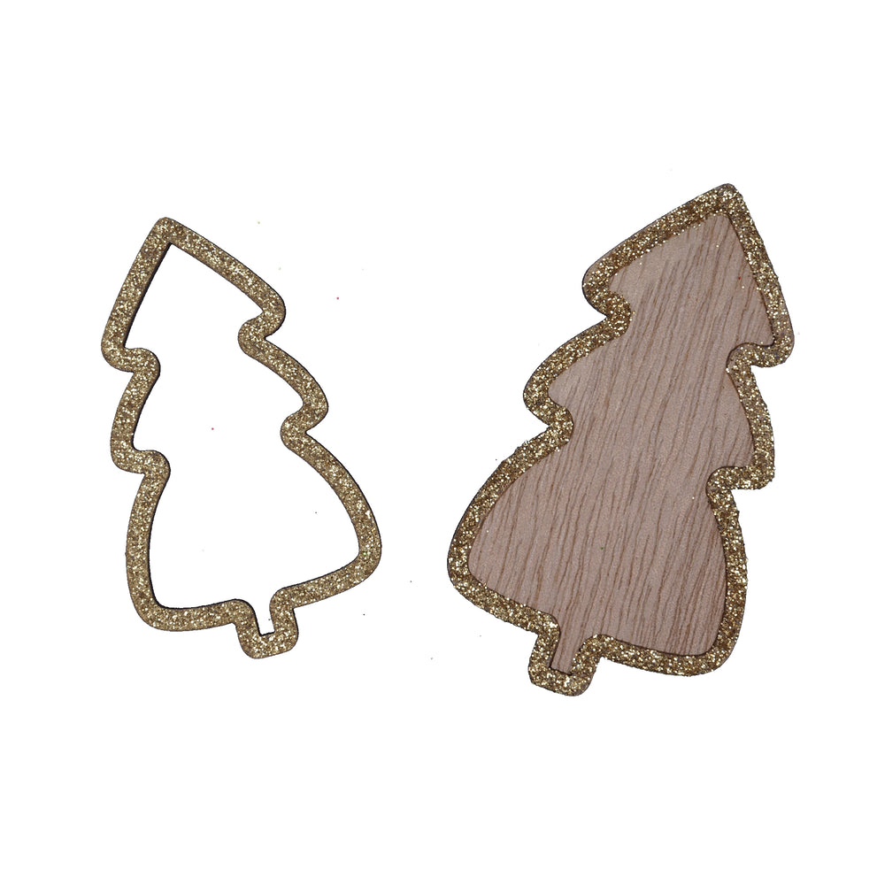 pb. 12 Holzbäume mit Goldglitter 7,5/6 cm