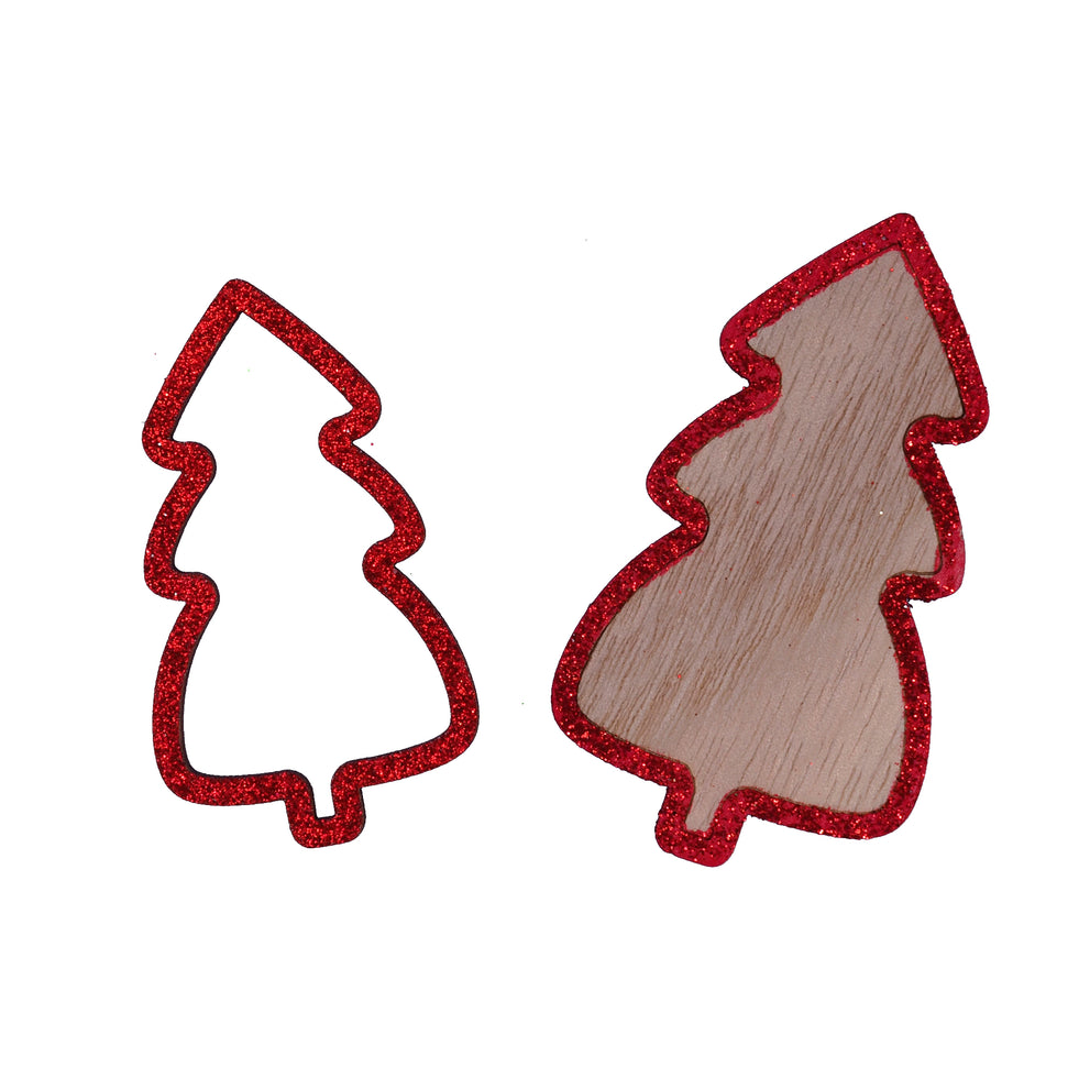 pb. 12 Holzbäume mit Glitzer rot 7,5/6 cm