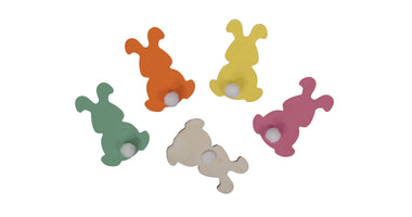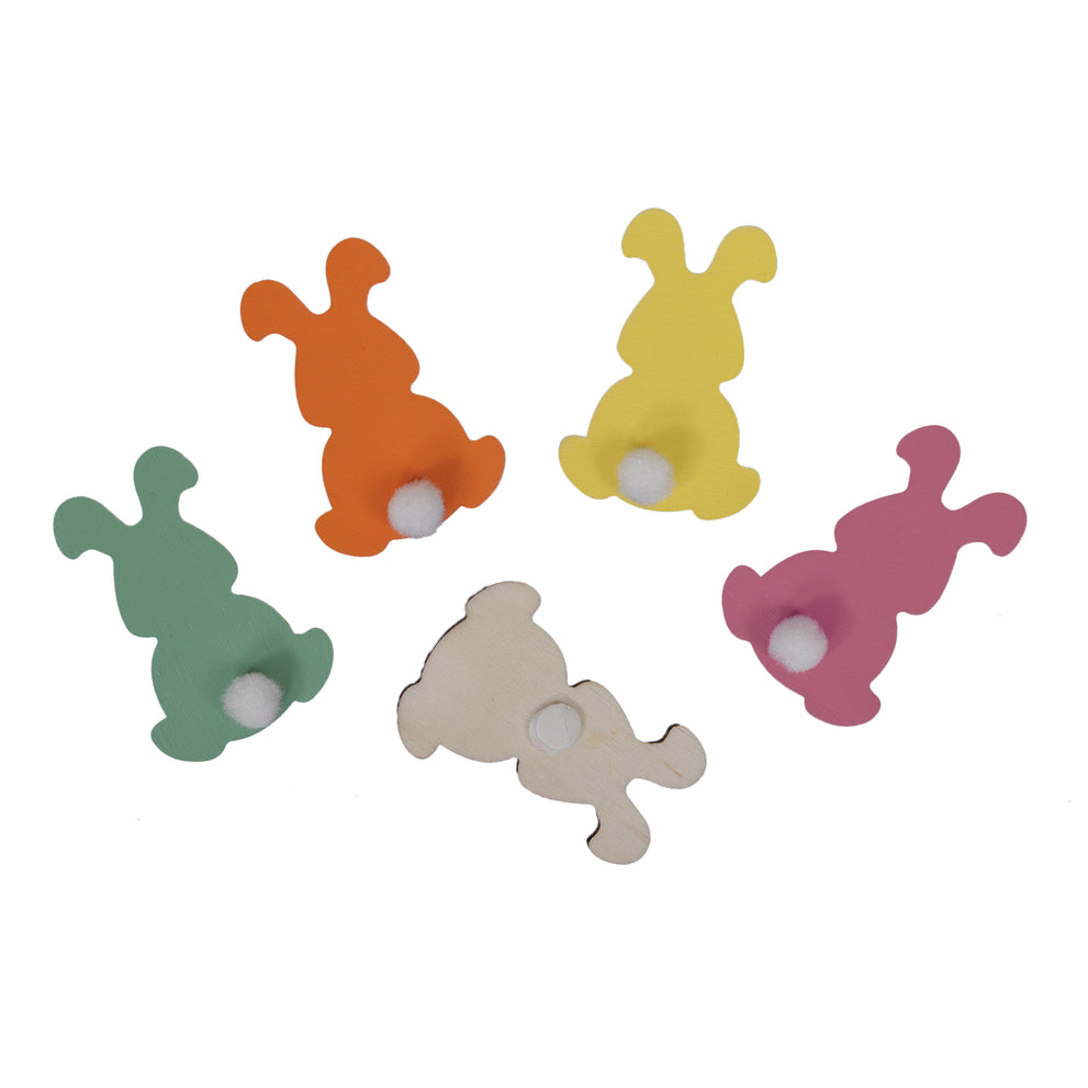 ca. 36 Holzhasen/Aufkleber, 4 verschiedene Motive, 3,5 x 5 cm