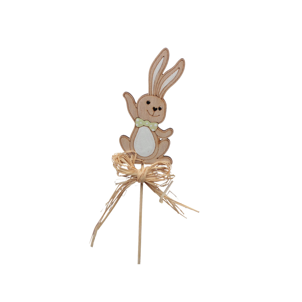 pb. 6 Holzkaninchen/Stock natur/grün 10x5 cm