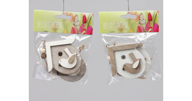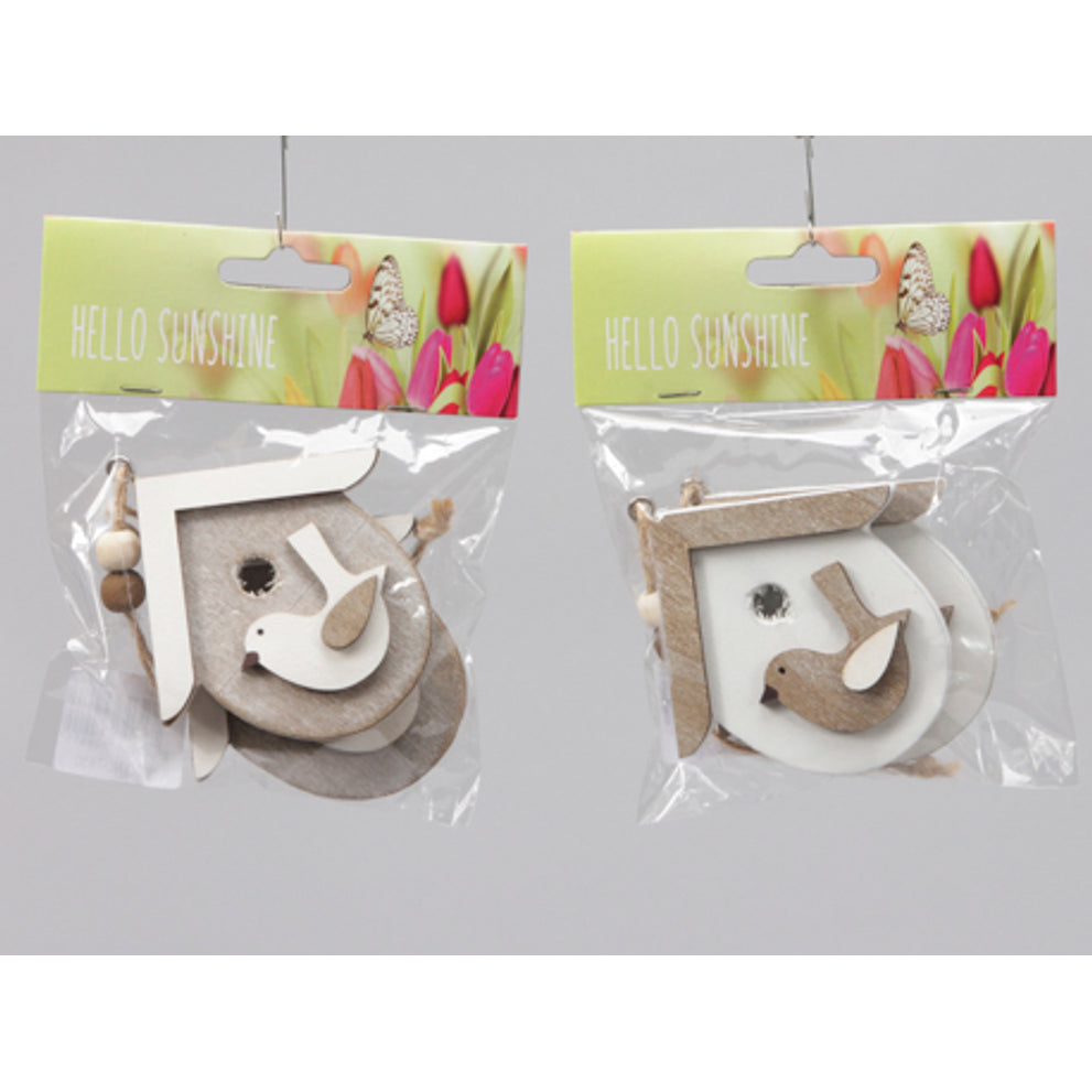 2 Holzvogelhäuser/hängend grau/weiß 8x8 cm